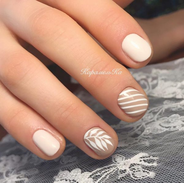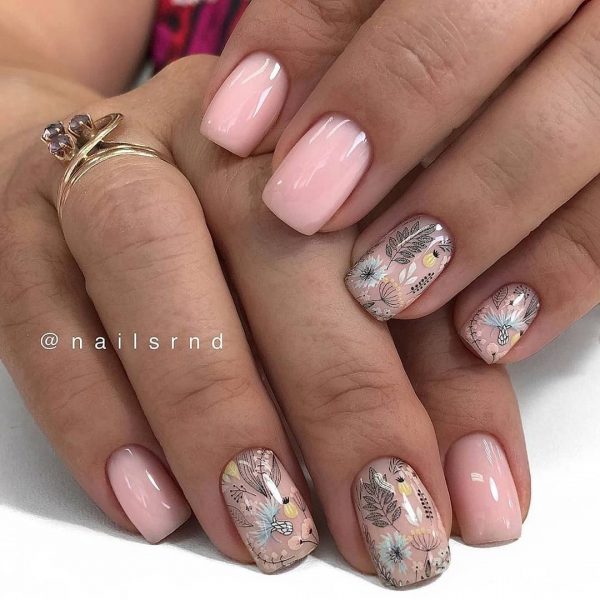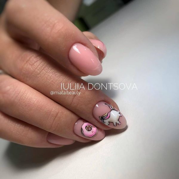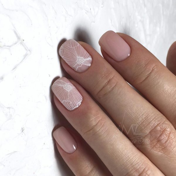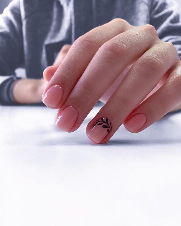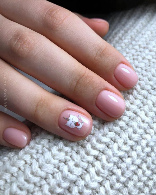 Нюдовый маникюр в школу с дизайном