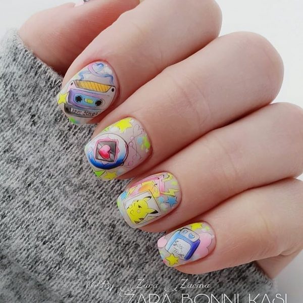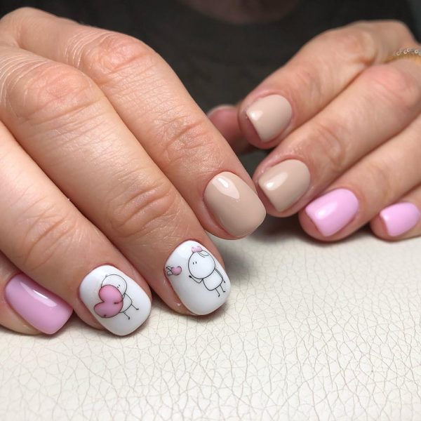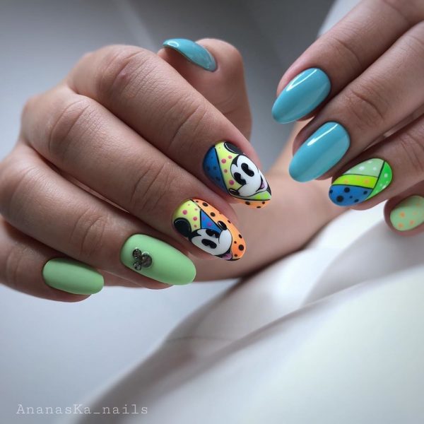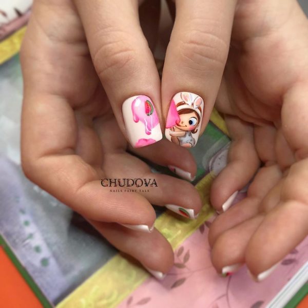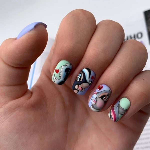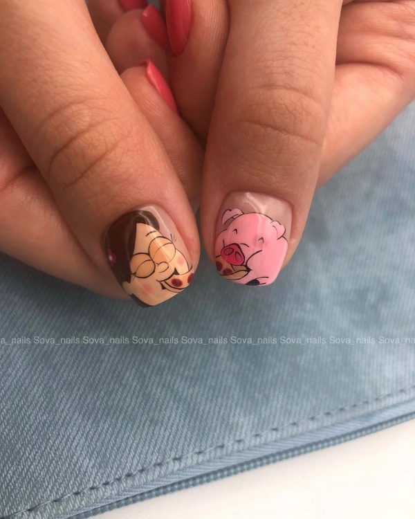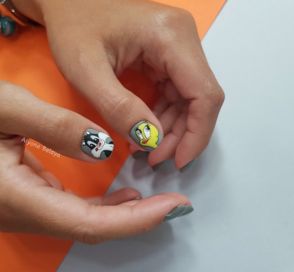 Забавный маникюр в школу с героями мультфильмов