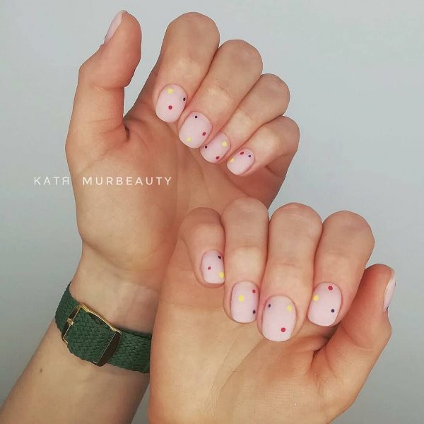 Простой маникюр в школу с точками
