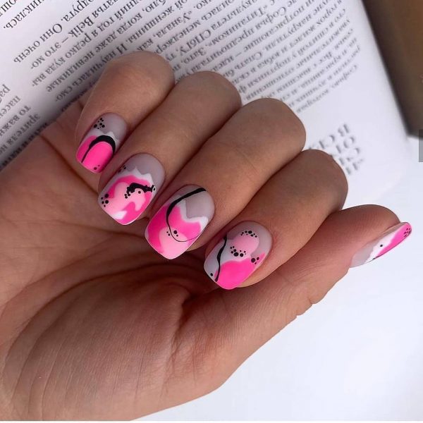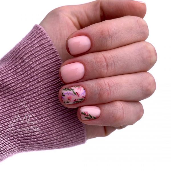 Розовый маникюр в школу