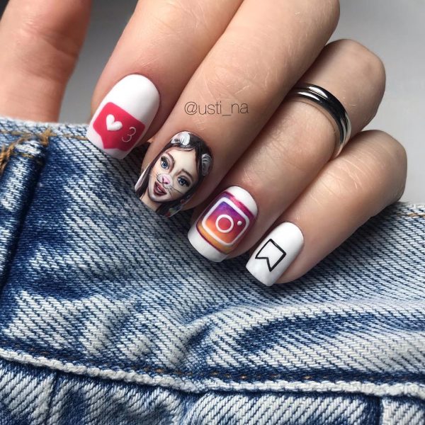Креативить можно с атрибутикой соцсетей, с надписями, которые наиболее чаще встречаются в школе, с тематическими рисунками, которые бы могли стать подсказками любимого занятия или развлечения. Танцы, игры, спорт вполне могут стать темой для удивительного и оригинального рисунка маникюра в школу.
