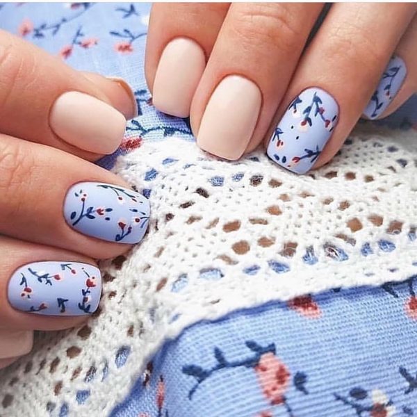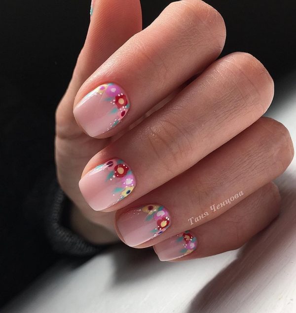 Красивый школьный маникюр с цветочками