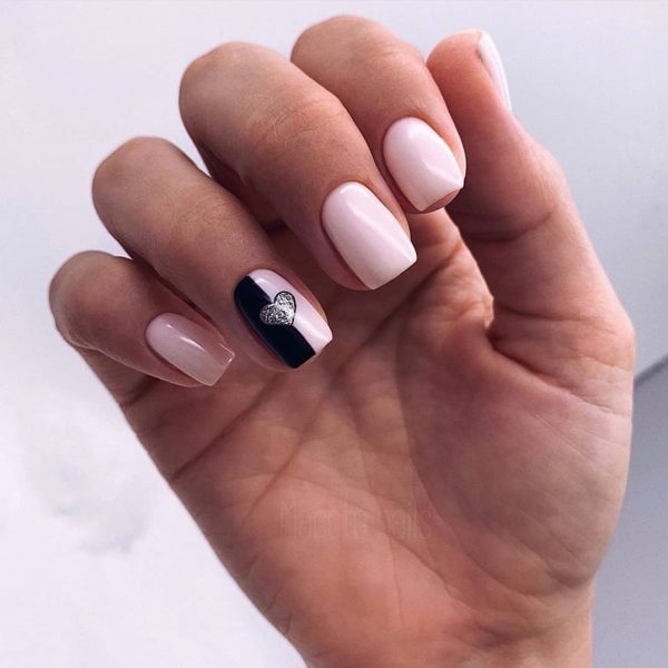 Одним из самых любимых рисунков девочек, которые будут уместными в маникюре в школу 2026 стали красивые сердечки. Подобный школьный маникюр с сердечком смотрится очень мило и романтично, к тому сделать его можно по-разному: в разных оттенках и стилях дизайна.
