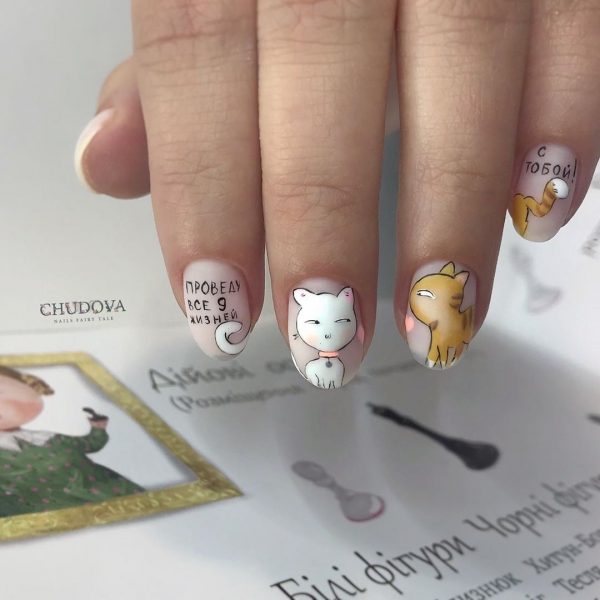 Оригинальный маникюр в школу с рисунком любимого питомца